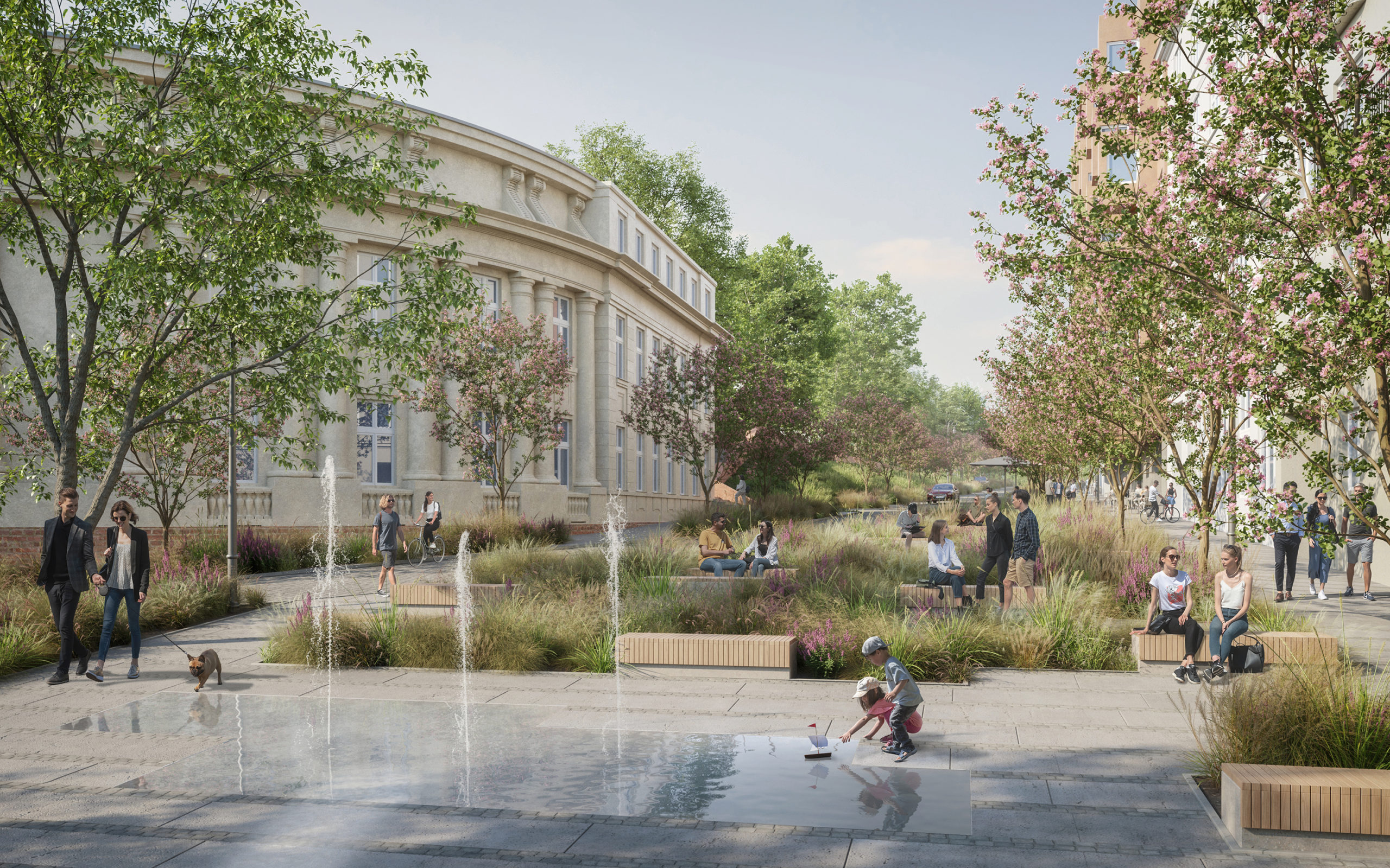 NOWA Karowa is conceived as an urban stage and social forum that supports everyday life, interaction, and recreation. The concept respects the site’s heritage, restores the visual axis from